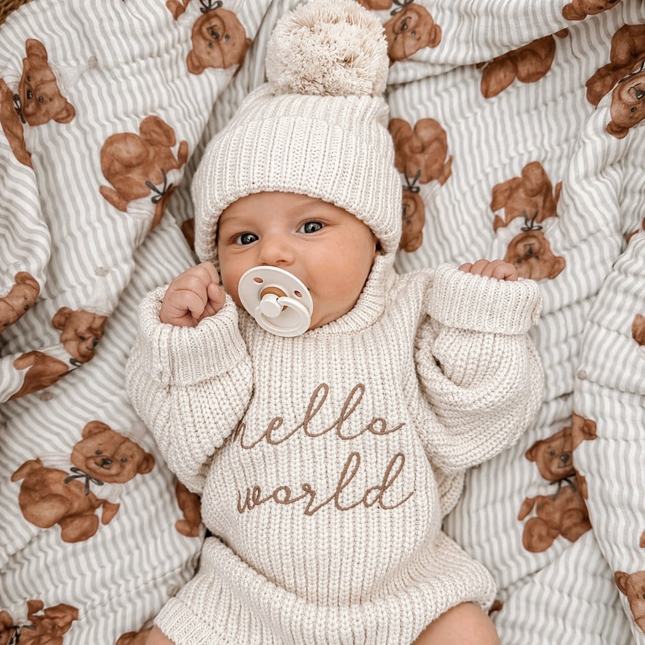 Gentle, breathable fabrics carefully chosen to care for your baby’s delicate skin from the very first days.