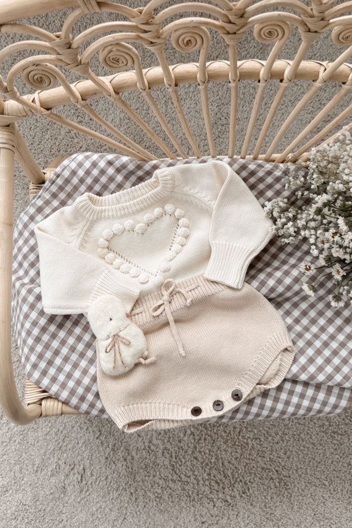This elegant, long-sleeved lace knit cotton bodysuit is the perfect dressy one-piece outfit for your newborn's first photos or their special take-home outfit.